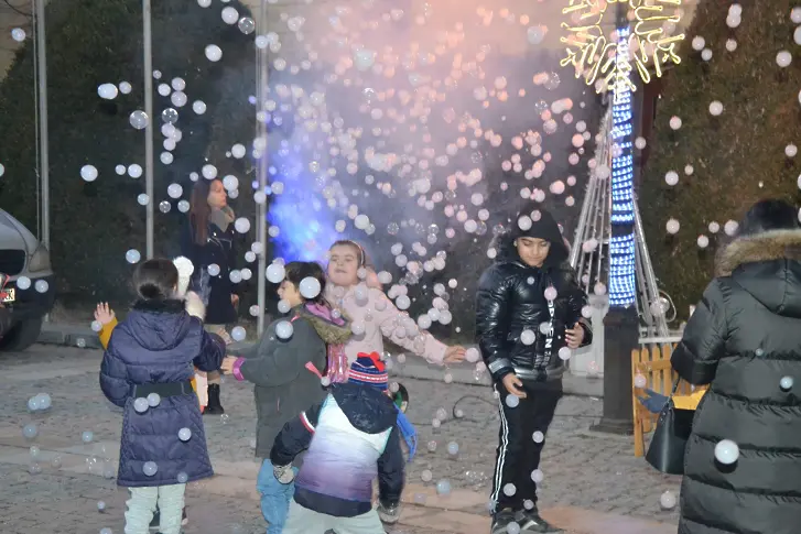 По време на празника, нетърпеливите палавници очакваха своите подаръци, но преди това изгледаха в захлас представлението „Зимен празник“ и се включиха в разнообразните и весели игри, за които се бяха погрижили актьорите от Държавен куклен театър – Сливен. Те забавляваха малчуганите от сцената, а сред детското множество на площада пък бяха кукерската група към Народно читалище „Пробуда“ с. Пъдарево и куклите Маршал от „Пес патрул“, Соник Пепа Пиг, Елза от „Замръзналото кралство“ и елена Рудолф, които позираха с удоволствие до котленчетата за снимки за спомен.