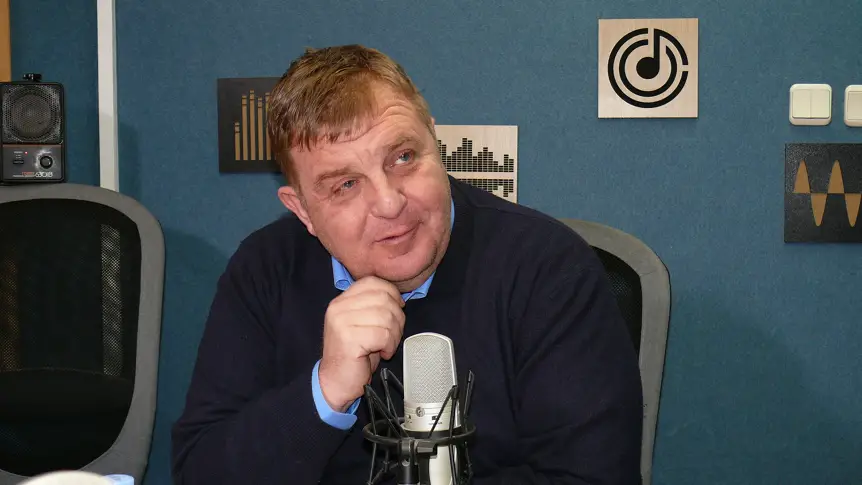 Вицепремиерът и министър на отбраната Красимир Каракачанов пред слушателите на Дарик.