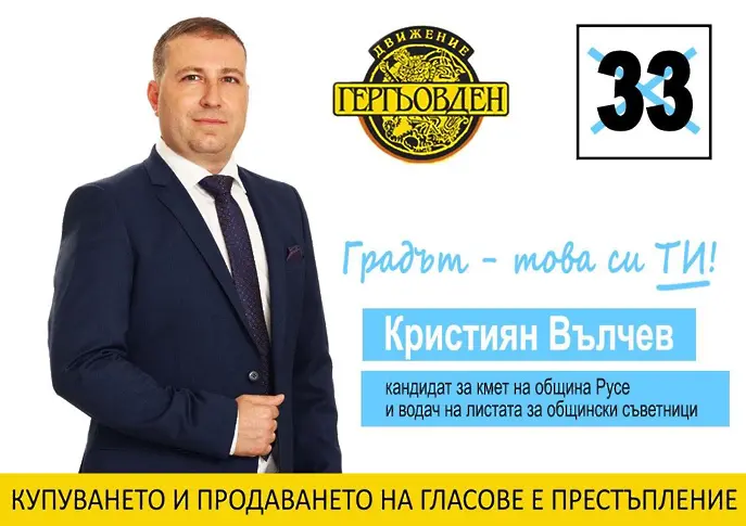 Кристиян Вълчев е кандидат за кмет на Русе от Движение “Гергьовден”. Партията е с №33 в бюлетината, а Вълчев е и водач на листата с кандидати за общински съветници.