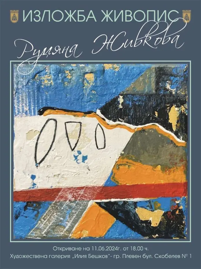 11 юни (вторник) – Самостоятелна изложба живопис на плевенската художничка Румяна Живкова. Авторката е добре позната на плевенските ценителите на изобразителното изкуство. Завършила е средното си образование в Средното художествено училище за приложни изкуства „Проф. Венко Колев“, гр. Троян. В седмата си самостоятелна изложба Румяна Живкова ще представи над 30 нови работи, сред които 8 миниатюри, 3 икони, 5 големи формата, диптих и др. За музикалната атмосфера на събитието ще се погрижи Стефанос Димитриу /китара/. Място – Камерна зала. Откриване – 18:00 ч.