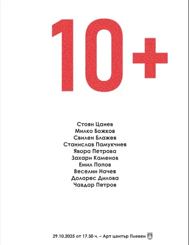 29 октомври (сряда) – изложба „10+“ – творбите си ще представят Стоян Цанев, Милко Божков, Свилен Блажев, Станислав Памукчиев, Явора Петрова, Захари Каменов, Емил Попов, Веселин Начев, Долорес Дилова, Чавдар Петров. Откриване – 17.30 часа.