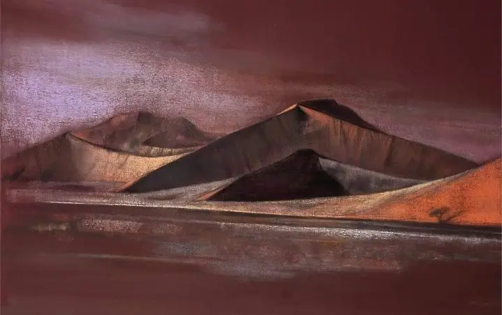 Картините на проф. Минчева разказват за усещането да се изкачиш на 300-метрови дюни, за тъмночервените пясъци до океана, архаичните каньони и необитаеми планини.