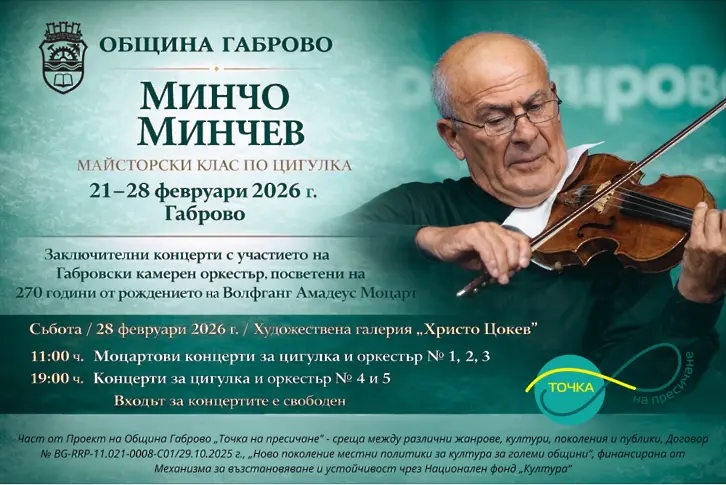 Габрово посреща едно от най-значимите музикални събития в страната - Майсторския клас по цигулка на проф. Минчо Минчев, който започва на 21 февруари в Художествената галерия „Христо Цокев“. В продължение на седем дни градът ще бъде средище на талант, музикална класа и обучение, водено от най-успешния български цигулар.