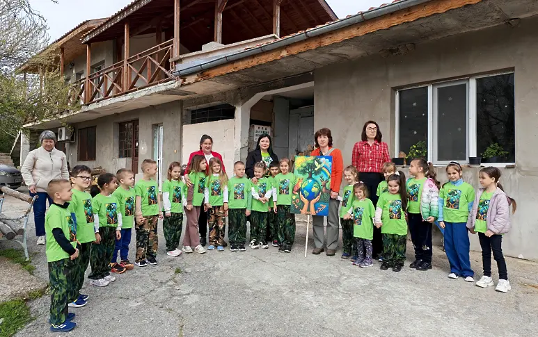 Горските служители подариха книжки за орлето на всяко дете, а на детската градина - две фиданки, които ще засадят в двора на детската градина.