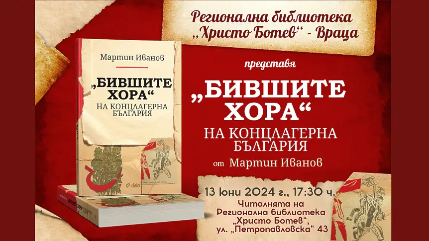 Регионална библиотека „Христо Ботев“ – Враца представя книгата „Бившите хора“ на концлагерна България“ от Мартин Иванов на 13 юни от 17:30 часа в „Обща читалня“.