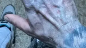 Приятел го убедил да отиде в болницата, където загрижените служители в спешното отделение му сложили кислород, но истината излязла наяве, когато лекар изтрил ръката му с тампон, който станал син.