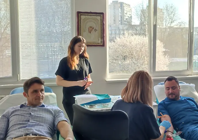 Първи дадоха пример старши комисар Емил Павлов - директор на областната дирекция на МВР и д-р Светослав Тодоров, зам.-директор на УМБАЛ Бургас. Към тях се присъединиха млади лекари от болницата и служители от различни звена в органите на реда.