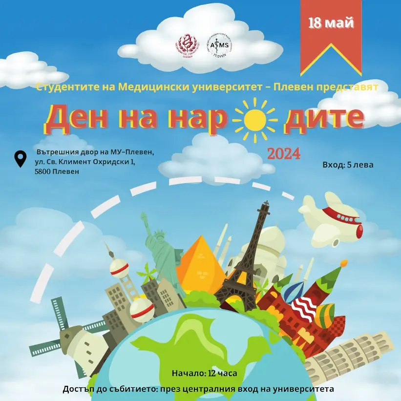 Денят на народите (International Day) 2024 e традиционен международен студентски фестивал, който ще се проведе тази година в двора на Ректора на Медицински университет - Плевен на 18 май 2024 г., събота. Студентският форум ще стартира в 12:00 ч с модно ревю на народни костюми и модни облекла на различните държави. Събитието ще продължи със състезание на отборите по държави, които ще пеят и танцуват на празничната сцена. На шатри студентите ще направят изложение на културата и обичаите на различните народи. Отборите и шатрите на държавите ще участват в надпревара за награди, като ще бъдат оценявани от жури по категории: най-добро представяне на отбор, най-добър щанд, най-добро цялостно представяне и избор на публиката. Събитието ще продължи с индивидуални изпълнения на студенти от различни националности.