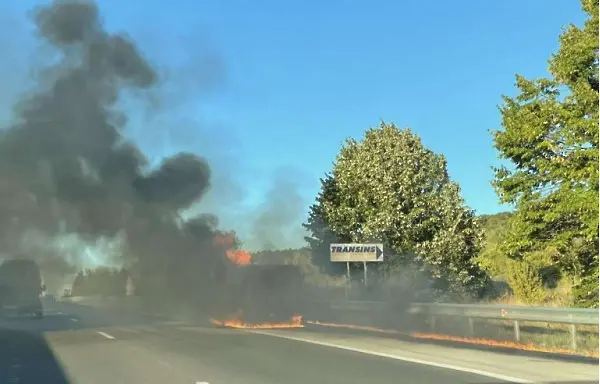 Няма пострадали хора. Огънят е бил изгасен, без да се налага да бъде отклонявано движението.