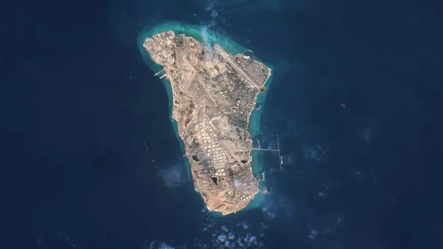 Иранската агенция Мехр съобщи днес, че островът е под обстрел.