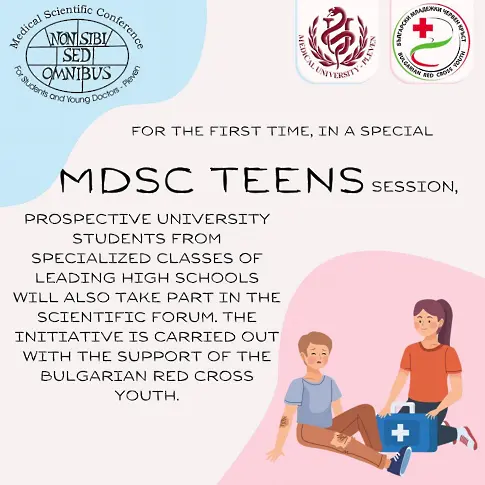 За първи път в специална сесия MDSC Teens в научния форум ще се включат и кандидат-студенти от профилираните паралелки на водещите гимназии от Плевен и региона. Програмата за бъдещите кандидат-студенти ще включва: практическо обучение по спешна помощ и информационен тур в Центъра за компетентност по персонализирана медицина, 3D и телемедицина, роботизирана и минимално инвазивна хирургия „Леонардо да Винчи“.