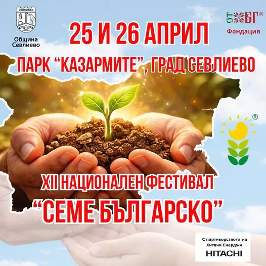 12-ти Национален фестивал „Семе българско“ се реализира от фондация „ОТ БГ“ с домакинството и партньорството на Община Севлиево и подкрепата на “Хитачи Енерджи”.