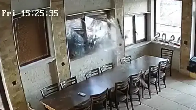 Силен вятър повали дърво във врачанския квартал „Бистрец“ този следобед. На записи от охранителна камера се вижда как дървото чупи прозорците на заведение, което в този момент е било затворено и вътре не е имало клиенти.