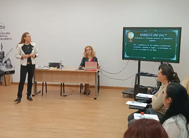 На 15 ноември Национален център „Музейно училище“ към НМО продължи изпълнението на дейностите по Националната програма на МОН с практикум на тема „Изкуствен интелект и дигитална промяна в часовете по история през ХХI век“.