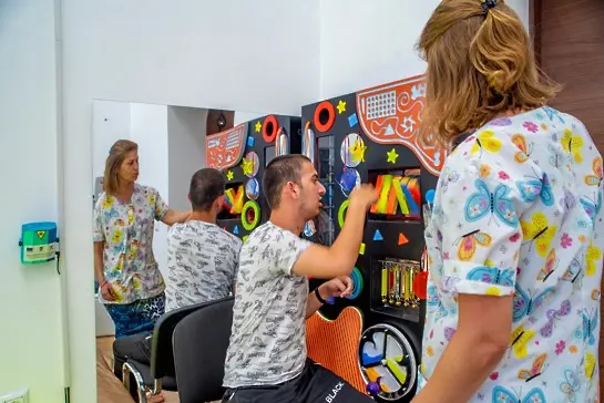 Дневният център предоставя комплексна подкрепа чрез интегрирани социални услуги в общността. Оказва помощ на 27 деца и младежи с тежки множествени увреждания, като провежда обучителни, терапевтични и рехабилитационни дейности, индивидуални и групови терапии. Дейностите се осъществяват от социални работници, педагози, психолог, логопед, рехабилитатори и медицинска сестра. Потребителите и родителите имат възможност за работа с психолог в психосензорна стая. Децата и младежите участват в занятия по лечебна физкултура в модерна рехабилитационна зала. Веднъж седмично се провежда групова психотерапия с тях. В отделно помещение се осъществяват общи занимания, които компенсират потребностите на потребителите в училищна възраст. Децата и младежите отбелязват заедно празници и рождените си дни. Те получават ежедневно топла и здравословна храна, приготвена в оборудваната кухня на центъра.