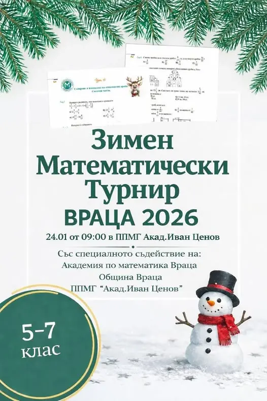 Над 200 ученици от V до VII клас от врачанските училища ще премерят знания и логическо мислене в Зимния математически турнир „Враца 2026“.