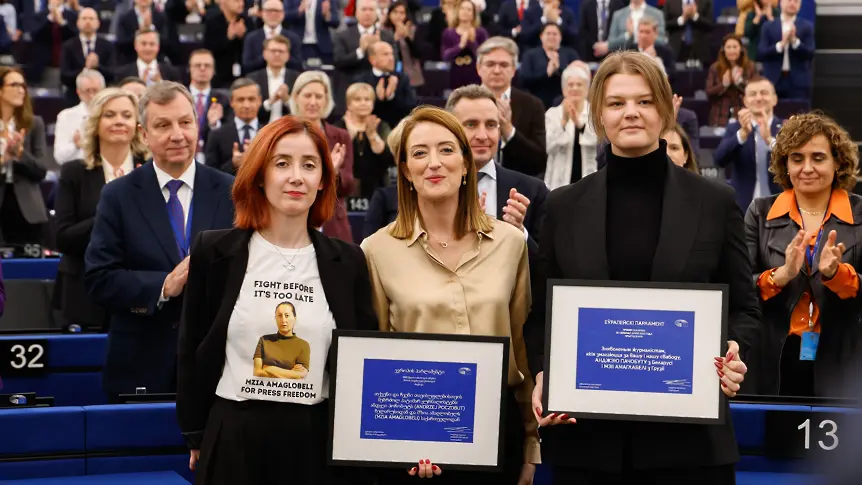 Димитрадзе прие наградата на името на академик Андрей Сахаров, връчвана за свобода на мисълта, от името на Амаглобели, а призът на другия лауреат - беларуския журналист от полското малцинство Анджей Почобут, бе получен от дъщеря му Яна.