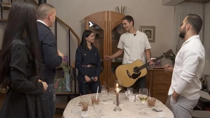 Макар храната в чиниите да остана под въпрос през цялата вечер, гостите със сигурност нямаха причина за притеснение относно музикалното оформление на вечерта. Победителката в романтичното риалити „Един за друг“ за 2025 г. Никол Ризова посрещна звездната компания в дома, в който е израснала, със специален коктейл от домашна ракия.