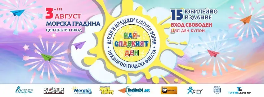15-ото издание на Детски и младежки културен форум „Най-сладкият ден“ ще се проведе тази събота, 3 август, от 10:00 до 20:00 часа на централния вход на Морската градина.
