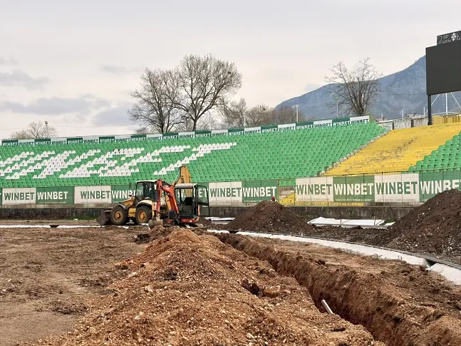 Напредва работата по лекоатлетическата писта на стадиона. Обектът бе инспектиран от кмета Калин Каменов.