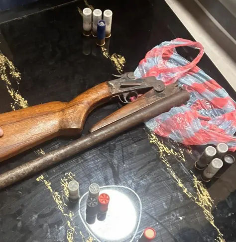 При извършените претърсвания и изземвания в условията на неотложност са открити незаконно притежавани 2 пушки и боеприпаси - ловна пушка със сгъваема цев, пушка със сгъваема цев и монтиран оптически мерник и 14 ловни патрона.