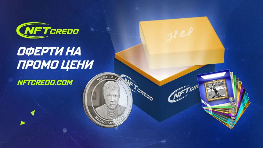 Празничното предложение е отстъпка от 20% при закупуване едновременно на юбилеен медал, посветен на 60-ата годишнина на Наско Сираков и NFT колекция, съдържаща някоя от сериите с ключови моменти от богатата кариера на голмайстор №1 на „Левски“. Вижте повече за отделните предложения на: https://nftcredo.com/offers.