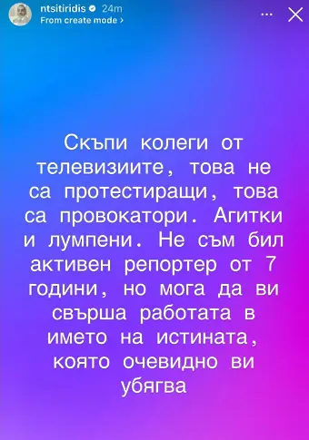 Шоуменът и инфлуенсър Николаос Цитиридис разкритикува остро българските телевизии заради редакционната им политика по време на изключително мащабния протест срещу властта от понеделник вечер.