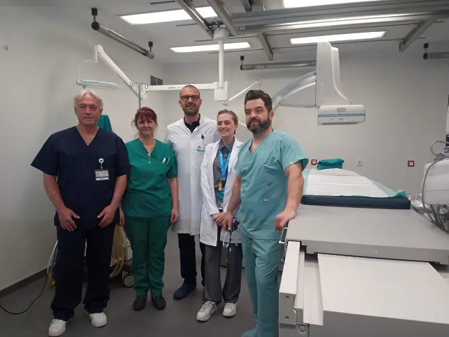 В русенската болница „Канев” вчера представиха нова хибридна операционна в отделението по съдова хирургия. Закупен е нов ангиограф, който дава нови възможности за работа на лекарите. С него се правят емболизационни процедури – с едно убождане може да се стигне до различни органи и да се прекъсне кръвотокът към тях, обясни началникът на отделението по съдова хирургия и национален консултант д-р Стоян Генадиев. Той разказа как точно работи апаратурата и какви операции се извършват с нея. А директорът на УМБАЛ „канев Русе Иван Иванов съобщи, че в момента текат процедури за закупуване на още модерна апаратура за болницата и обновяване на различни сектори.
