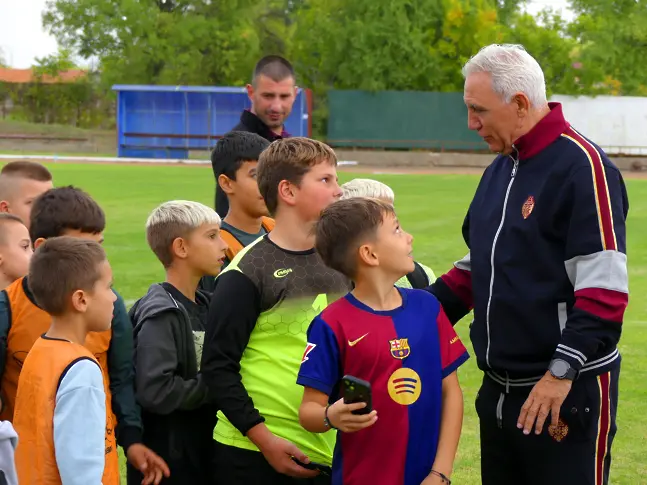 Малките футболисти от ФК „Загорец“ също отправиха своето специално приветствие към идола си с демонстративни изпълнения на стадиона – доказателство, че успехите на Стоичков продължават да вдъхновяват бъдещите поколения шампиони.