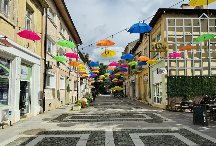За празничните дни нова арт инсталация ще радва жители и гости на Враца. Цветните чадъри са 200 на брой и украсяват емблематичната улица "Търговска".