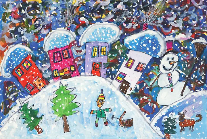 Тази година избраната рисунка е "Зимна приказка" на 8-годишната Патрисия Василева - ученичка в Начално училище „Отец Паисий“ в Плевен и възпитаник на арт школа „Колорит“ с ръководител художничката Майя Ананиева. В следващите дни рисунката на Патрисия ще достигне до стотици адреси в Плевен и страната.