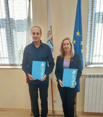 Днес, в сграда на община Кюстендил, кметът Петър Паунов и Кристина де Бройн, представител на УНИЦЕФ за България, подписаха Меморандум за разбирателство и сътрудничество за въвеждане на модел на интегрирана подкрепа за деца жертви и свидетели на насилие и техните родители- „Зона закрила” – детски център за застъпничество и подкрепа.