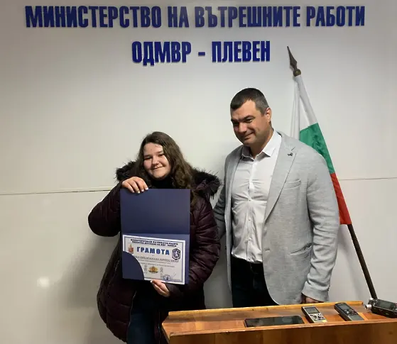 За доблестна постъпка двама възпитаници на плевенски гимназии са удостоени с грамоти от директора на ОДМВР - Плевен ст. комисар Веселин Вътов.
