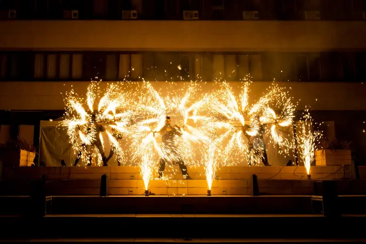 Виртуозите от огнено шоу „Палячи“ ще закрият вечерта ( около 19.00 ч.) с най-новия си светлинен спектакъл, номиниран за награда „Икар“