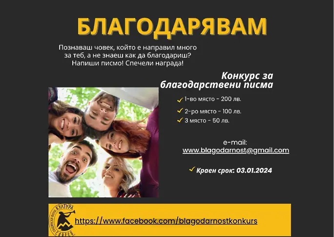 Авторите на отличените писма ще бъдат оповестени на 11.01.2024 г. – Денят на думата „Благодаря”