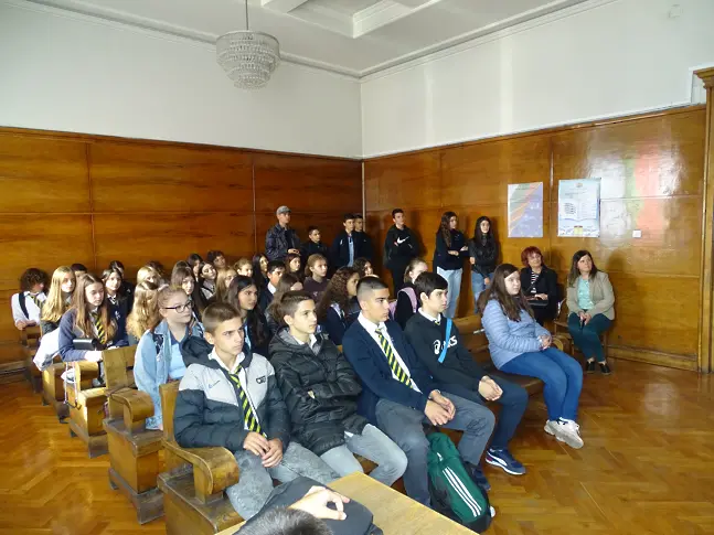 Срещата продължи в съдебна зала № 7, където съдия Атанасова представи пред младежите професията „съдия“, обясни реда за провеждане на съдебните заседания, ролята и мястото на участниците в процеса. Учениците научиха как се образува едно дело, през какви етапи преминава неговото разглеждане, в какъв състав съдът взема решения и по какъв начин и пред кого недоволните страни могат да го обжалват.