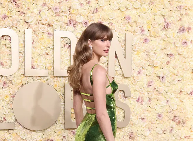 Суперзвездата на поп музиката, която чупеше рекорд след рекорд през 2023 г., загуби петата си номинация за "Златен глобус". Суифт обаче изглеждаше зашеметяващо в искрящо зеления си тоалет на "Гучи". По-късно певицата