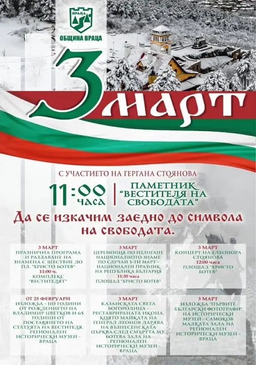 На 3 март Община Враца кани жителите и гостите на града да се включат в тържественото честване на националния ни празник.