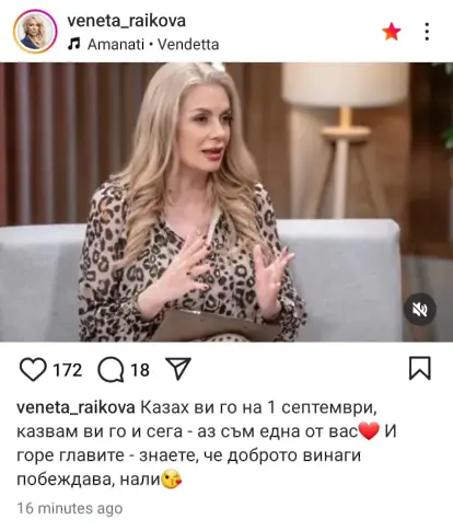 Водещата Венета Райкова отговори на последните събития, свързани с БТВ, в социалните й мрежи.
