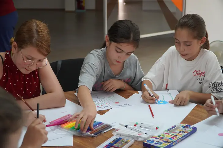 Първият модул от Летния университет – „Творѝ и споделѝ чрез изкуство!“ – арттерапия на емоциите, бе ръководен от г-жа Ралица Петрова, художник и ръководител на Арт школа „Таланти“. Тя подготви творчески предизвикателства, чрез които децата имаха възможност да се потопят в света на изкуството и да изразят свободно своите емоции.