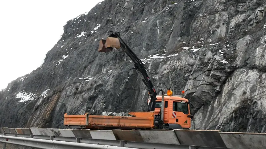 Временно е ограничено движението по път II-82 София – Самоков в района на ВЕЦ „Пасарел“ заради паднала скална маса.