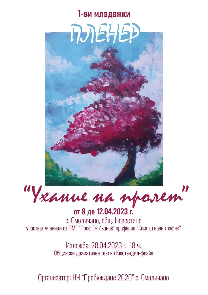 От 8 до 12 април 2023 г. в творческата база на НЧ „Пробуждане 2020”, село Смоличано, община Невестино ще се проведе Първи младежки художествен пленер „Ухание на пролет“.