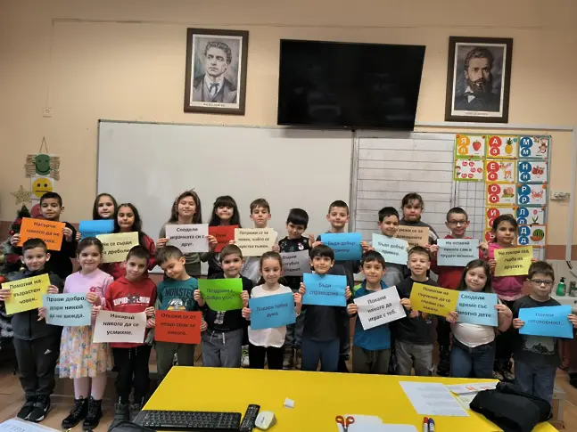 В навечерието на най-светлите празници, първокласниците от НУ „Христо Ботев“ – Плевен доказаха, че добротата няма възраст. По повод инициативата „Урок по доброта – Плевен подава ръка“, малките ученици отправиха 64 трогателни послания за това как можем да даряваме доброта на хората около нас.