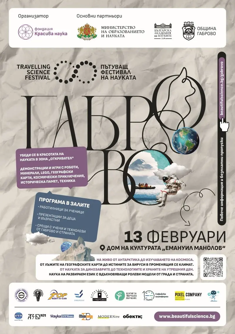 Пътуващият фестивал ще постави фокус върху критическото мислене и преодоляването на дезинформацията с фактологичната истинност на науката. Той ще сподели с габровци и гостите на града вдъхновяващи истории от различни клонове на научните изследвания и иновациите. Посетителите ще се срещнат с учени, които увлекателно и достъпно разказват за своята работа, с която променят съвременния свят към едно по-добро бъдеще за хората.