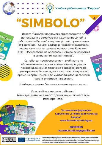 Учебно помагало под формата на аналогова игра „SIMBOLO“ с обширен учебен материал за насърчаване на образованието по демокрация в ежедневния семеен живот. Играта се разпространява безплатно с образователна цел!