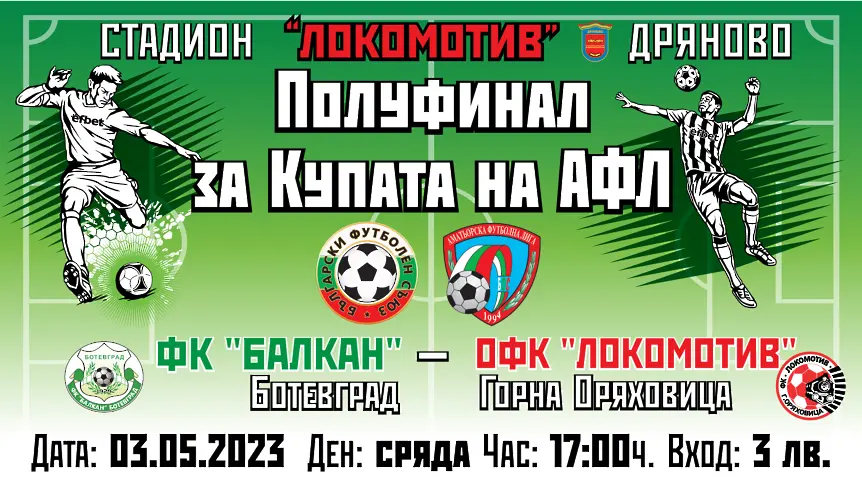 На 3-ти май, сряда, Дряново е домакин на Полуфинала за Купата на Аматьорската футболна лига.