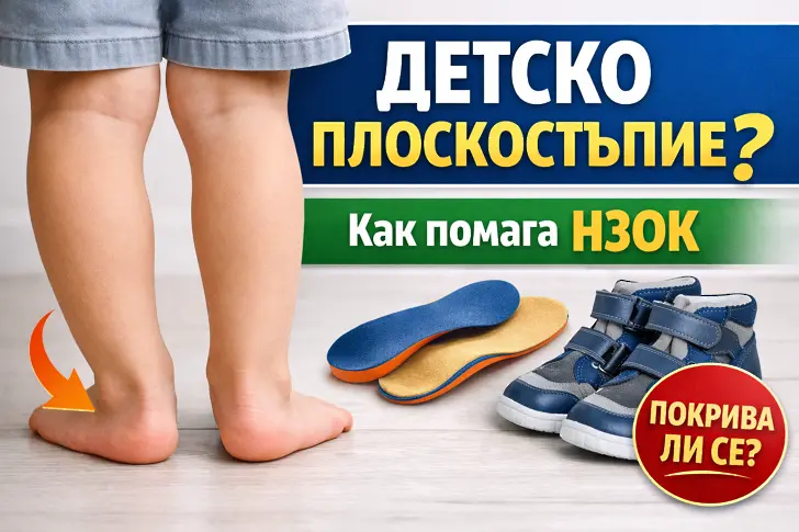НЗОК покрива частично или напълно разходите за ортопедични обувки и стелки, изработени по индивидуална мярка за деца с доказано ортопедично заболяване, включително плоскостъпие. Първата стъпка е посещение при личния лекар, който издава направление за ортопед. След поставяне на диагноза детето се насочва към Лекарска консултативна комисия – ЛКК. Комисията извършва преглед и издава протокол, след което подава електронно заявление към НЗОК или РЗОК.