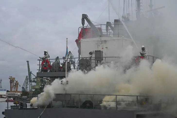 Демонстрация по потушаване на пожар на кораб направиха участниците във военноморското учение „Бриз 2023”.