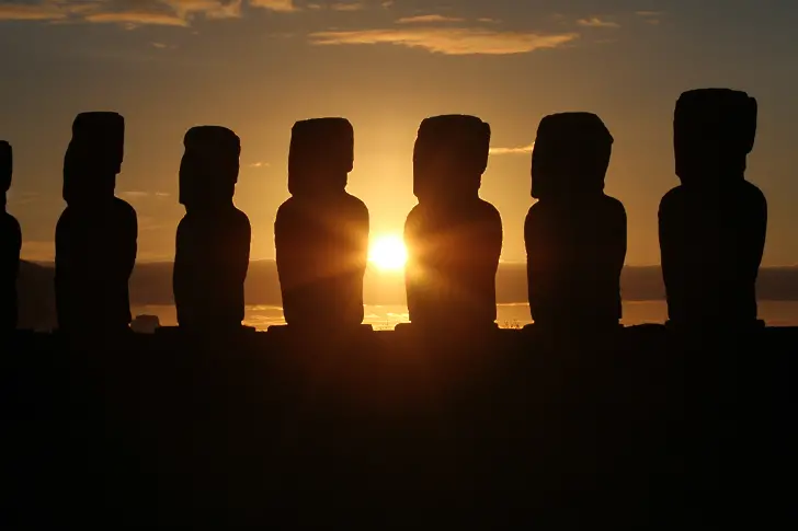 На острова има почти 1 000 каменни монументални статуи, познати като моаи. Те са направени от полинезийското племе Рапа Нуи преди повече от 500 години.