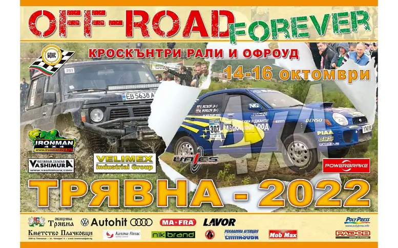 От 14 до 16 октомври 2022 год. в Трявна и Плачковци ще се проведе традиционното офроуд състезание „Tryavna 2022 Offroad Forever“, което тази година ще събере над 100 екипажа от страната и чужбина. Както вече Ви информирахме, официалното откриване на екстремната надпревара ще се състои на 15 октомври /събота/ от 08:45 ч. пред сградата на Община Трявна.